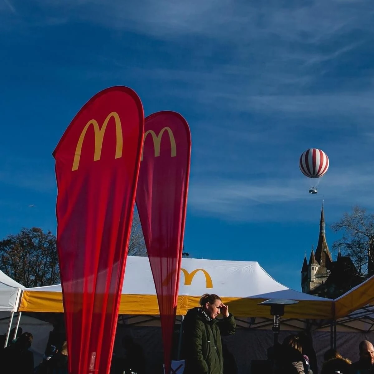 Nasze flagi reklamowe posiadają wyjątkowo trwały nadruk sublimacyjny, odporny na ścieranie i promieniowanie UV. Zapewniamy doskonałe przebicie i nasycenie kolorów oraz wyraźne krawędzie nadruku. Korzystamy z bezpiecznych tuszy, spełniających normy OEKO-TEX® STANDARD 100.