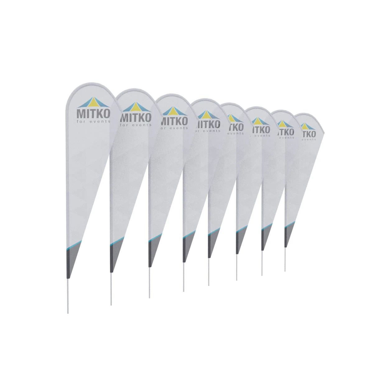 To właśnie wśród flag Flyer znajdują się modele w najmniejszym i największym rozmiarze – flaga Flyer S (135 cm) i flaga Flyer XL (430 cm). Dwustronny nadruk możliwy jest tylko w przypadku flagi Flyer M. Ostatnią wersją rozmiarową tego modelu jest flaga Flaga Flyer L (90x330 cm). Jeśli potrzebujesz mniejszej ilości flag Flyer L, zobacz zestaw 4 flag.