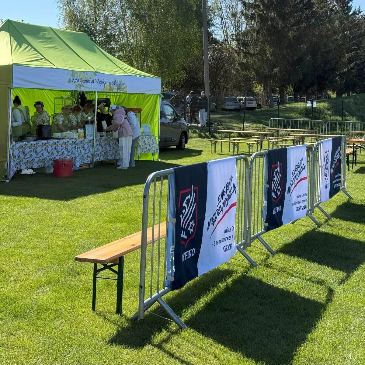 - Paski z rzepami wszyte w baner umożliwiają jego szybki montaż bez użycia narzędzi