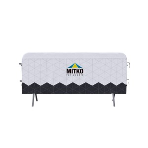 Wykorzystaj w pełni powierzchnię reklamową i zadrukuj obie strony banerów. Poszycie wykonane z poliestru jest lekkie, a nadruk sublimacyjny niezwykle trwały. Banery Poncho FULL nakładane są na barierkę i przykrywają je w całości. W banerach znajdują się otwory na wystające elementy do łączenia barierek.