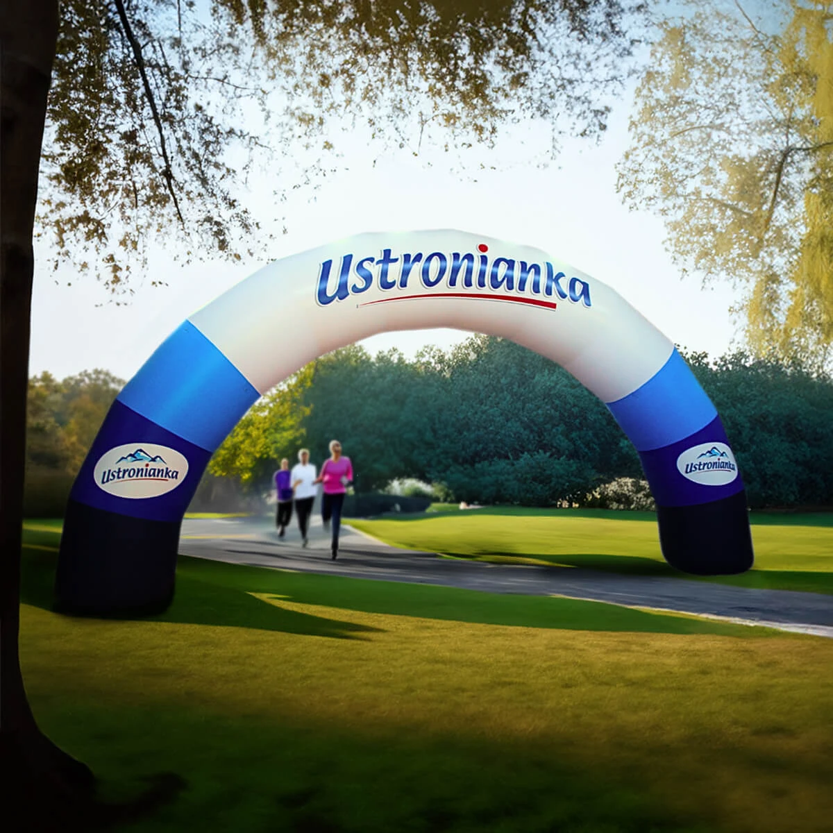 Brama dmuchana Łuk 11,20x5,60 m z pełnym nadrukiem to wielkoformatowe rozwiązanie promocyjne stworzone z myślą o dużych eventach, maratonach, koncertach i imprezach masowych. Jej rozmiar i dynamiczny kształt łuku sprawiają, że doskonale eksponuje logotypy sponsorów oraz przyciąga wzrok uczestników.
