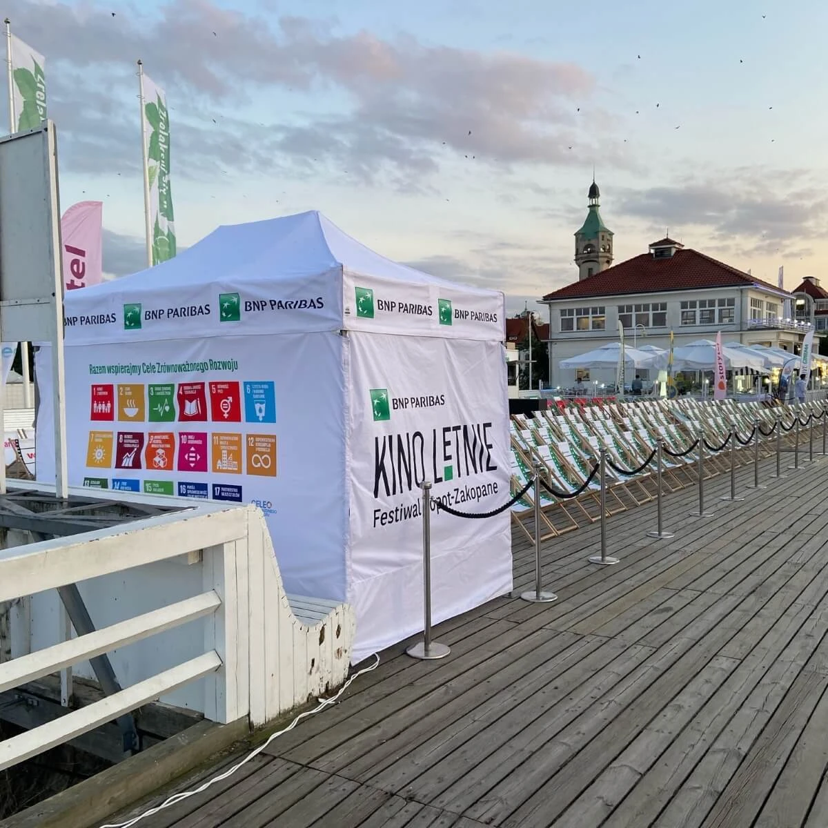 Nasze namioty ekspresowe z nadrukiem na falbanach to doskonałe rozwiązanie dla zabezpieczenia miejsca eventu z subtelnym brandingiem.