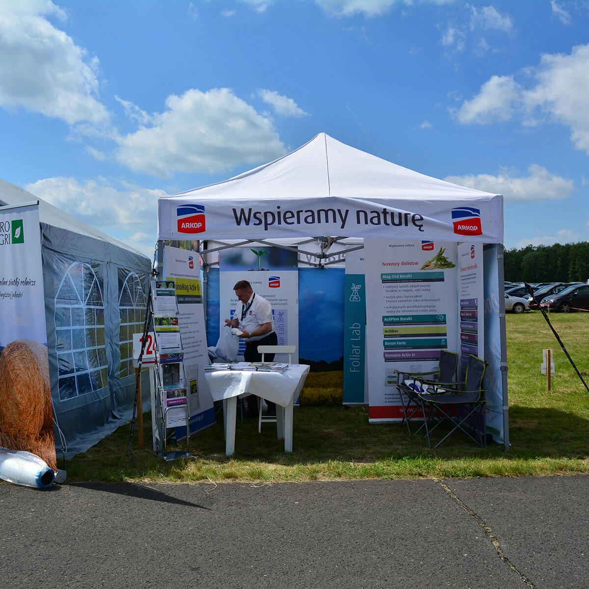 Nasze namioty z nadrukiem na falbanach to doskonałe rozwiązanie dla zabezpieczenia miejsca eventu z subtelnym brandingiem. 3 ściany doskonale chronią przed deszczem i wiatrem.