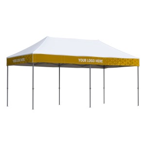 Duży namiot ekspresowy z oryginalną grafiką na poszyciu już z daleka przyciąga uwagę gości eventu. Wykorzystaj ten fakt i umieść na falbanach dachu swojego namiotu 3x6 dowolny nadruk reklamowy.