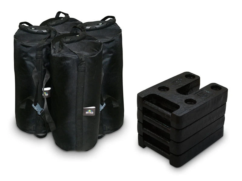 - 4 obciążniki 27,5 kg na nogi środkowe i 4 obciążniki piaskowe / żeliwne 16 kg na nogi narożne, na twarde podłoże, do ochrony przed wiatrem do 50 km/h.