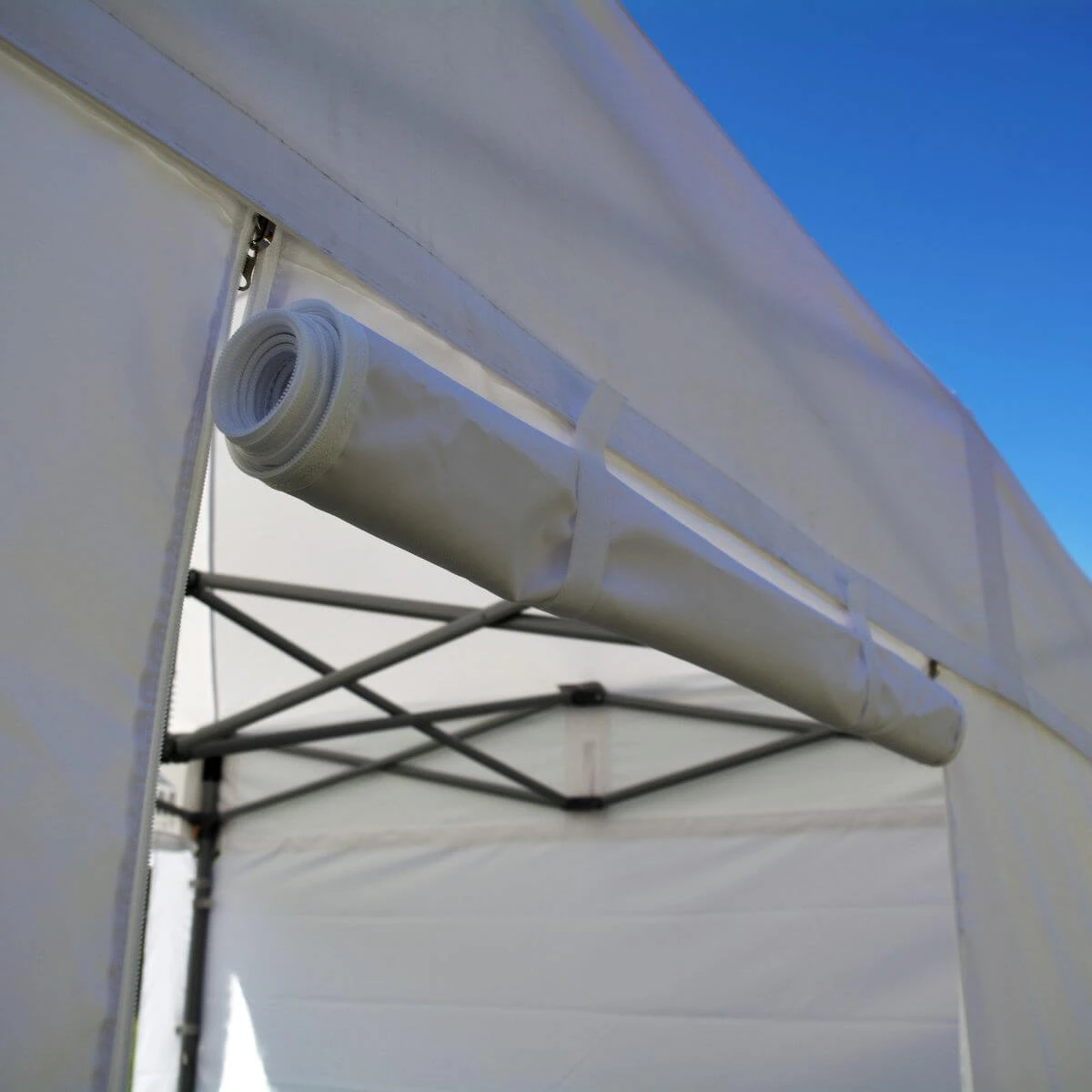 - 3 pełne ściany 3 m bez nadruku zapinane na rzepach do falban dachu.