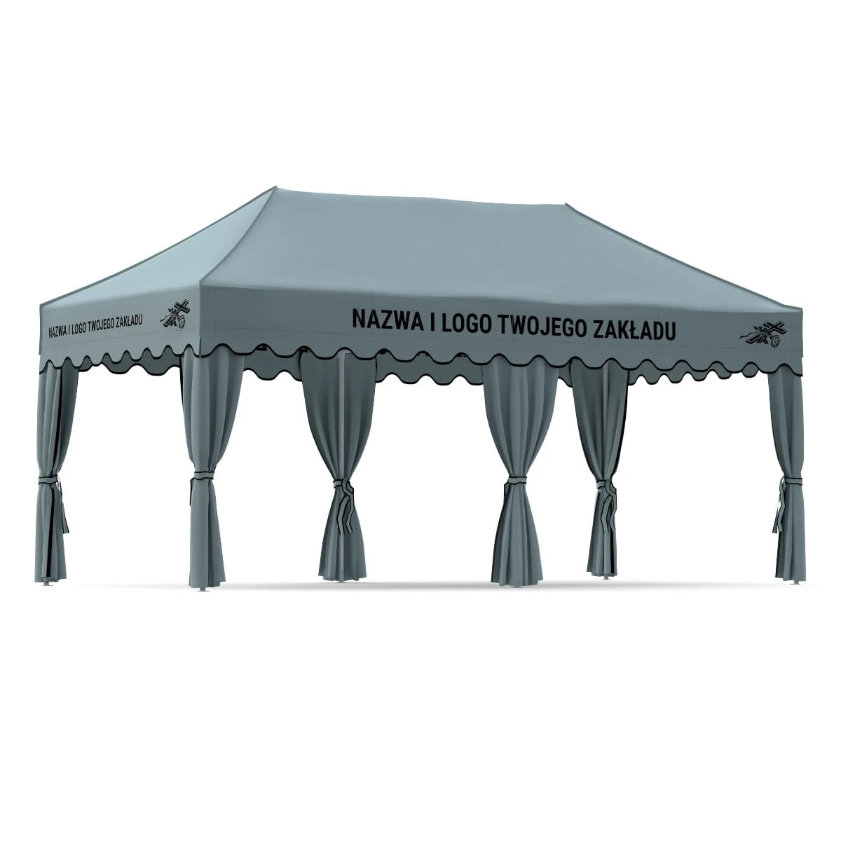 Wzmocniony namiot pogrzebowy 3x6 m Octa Optima II z logo na falbanach