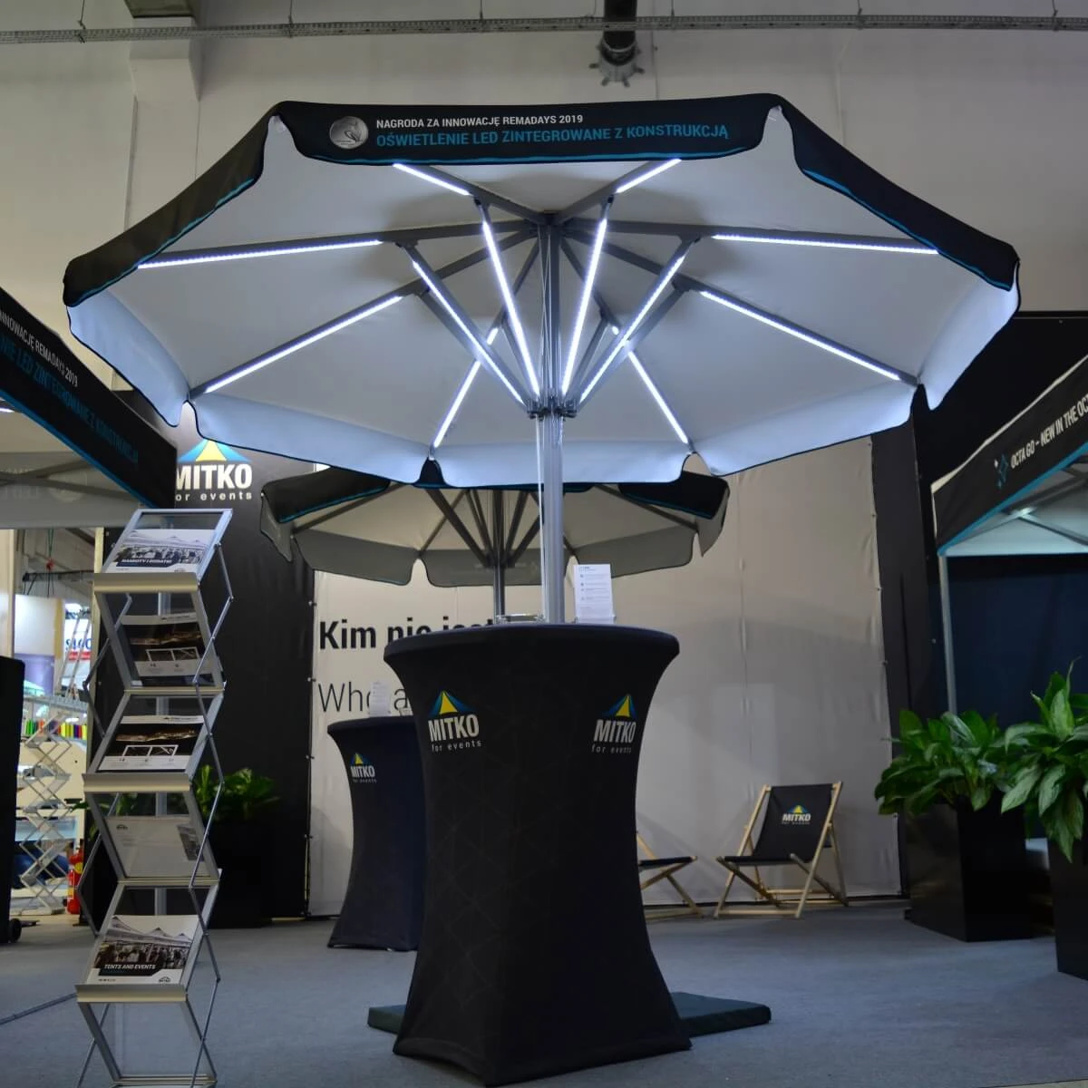 Oświetlenie LED wbudowane w konstrukcję parasola to propozycja, która przypadnie Ci do gustu, jeśli lubisz innowacje. Jeśli nie jesteś fanem nowości, to spróbuj się do nich przekonać – przecież to właśnie takie rozwiązania sprawiają, że jesteś o krok przed swoją konkurencją!