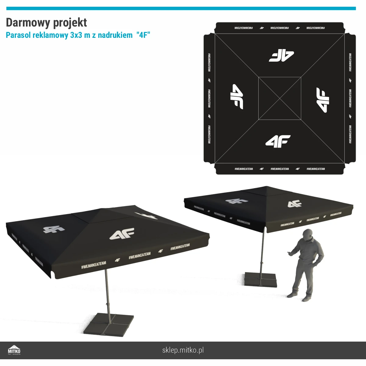 Doskonały nadruk cyfrowy na parasolu reklamowym 3x3 m