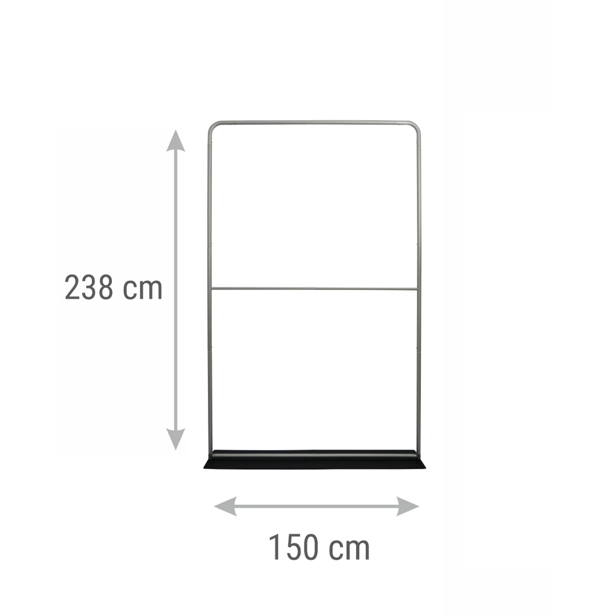 - Aluminiowa konstrukcja ścianki reklamowej z torbą transportową zapinaną na zamek, z praktycznymi uchwytami usprawniającymi transport.